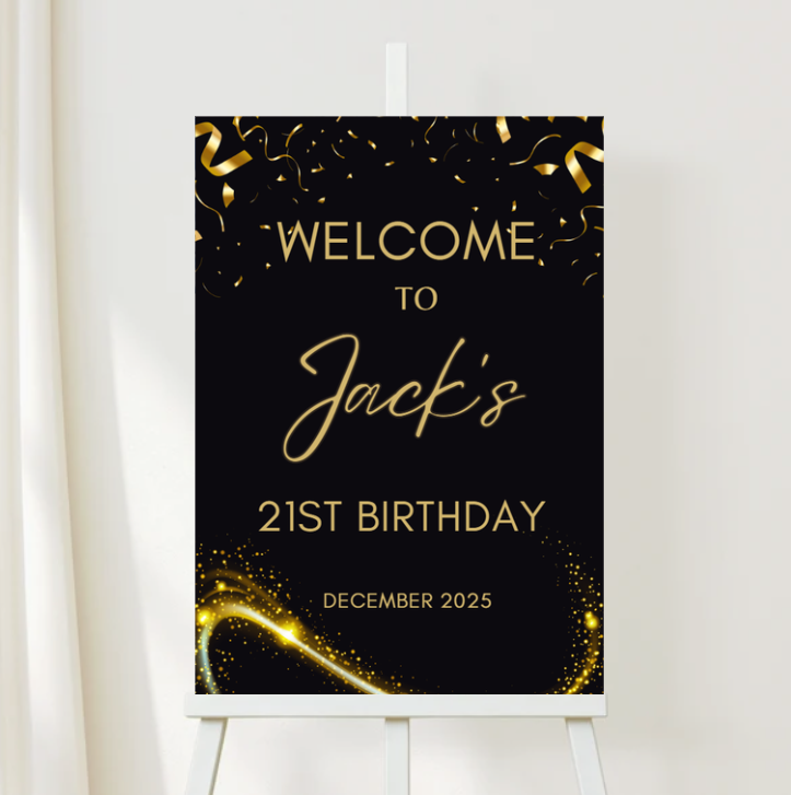 Printed on premium matte paper, our Black 21st Birthday Welcome Signs set the perfect joyful tone for your celebration, warmly greeting guests as you share your exciting news.